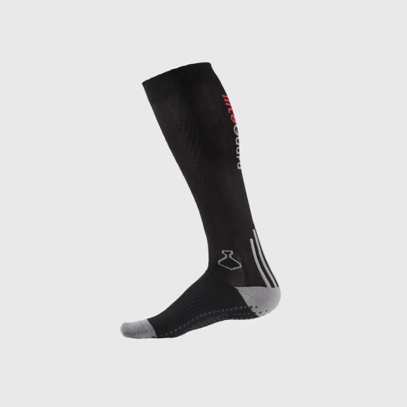 Kompressionsstrømpe velegnet til løberen, der vil præstere maksimalt hver gang. Strømpen er udstyret med et innovativt silikonemønster langs skinnebenet, der stimulerer blodflowet og giver ekstra støtte. Desuden sikrer den skridsikre sål et fast greb i skoen, så du undgår vabler og blå negl.