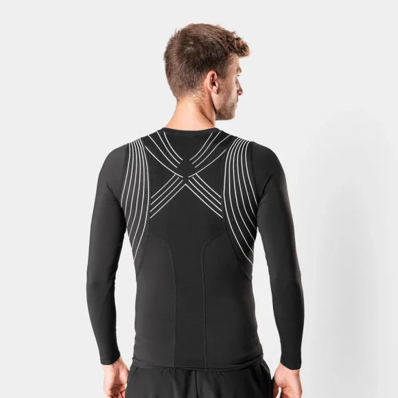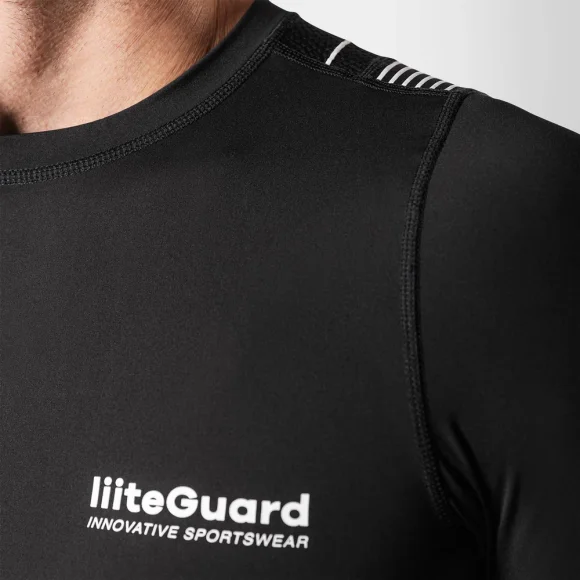 Opnå bedre holdning og støtte under træning med liiteGuards SPINE-TECH BASELAYER. Designet med en særlig konstruktion omkring den øvre del af ryggen, som har til formål at forbedre din kropsholdning. Den tætsiddende pasform sikrer optimal svedtransport, så du ikke bliver kold. Den indbyggede mesh på ryggen giver ekstra ventilation og temperaturregulering.